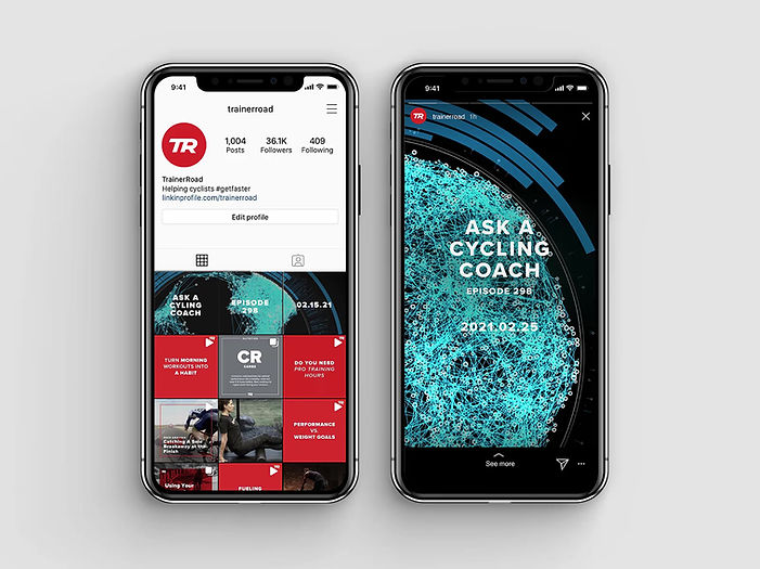 One of TrainerRoad's biggest product releases was adaptive training. The goal was to create a lot of excitement around it, much like an Apple launch. The news was teased on Instagram, encouraging people to tune in live to the podcast. The campaign was incredibly successful, with the largest live audience for the podcast in TrainerRoad history. The launch video was created in collaboration with Spillt agency and debuted at the start of the podcast. At the same time as the video launch there was a social media grid takeover as well as a shorter video on stories for anyone who didn't make the stream.